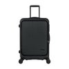 フロントオープン仕様で、移動中でもノートPCや書類、旅の必需品をスムーズに出し入れ可能。60mm径静音ダブルキャスター(Silent Run)により安定した走行と静音性を実現。加えてホイールロックスイッチで不意な転がりを防ぎ、混雑した駅や車内でも安心です。