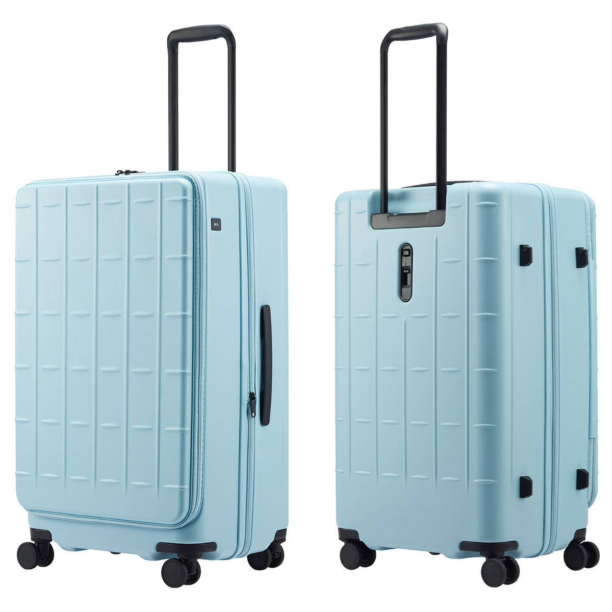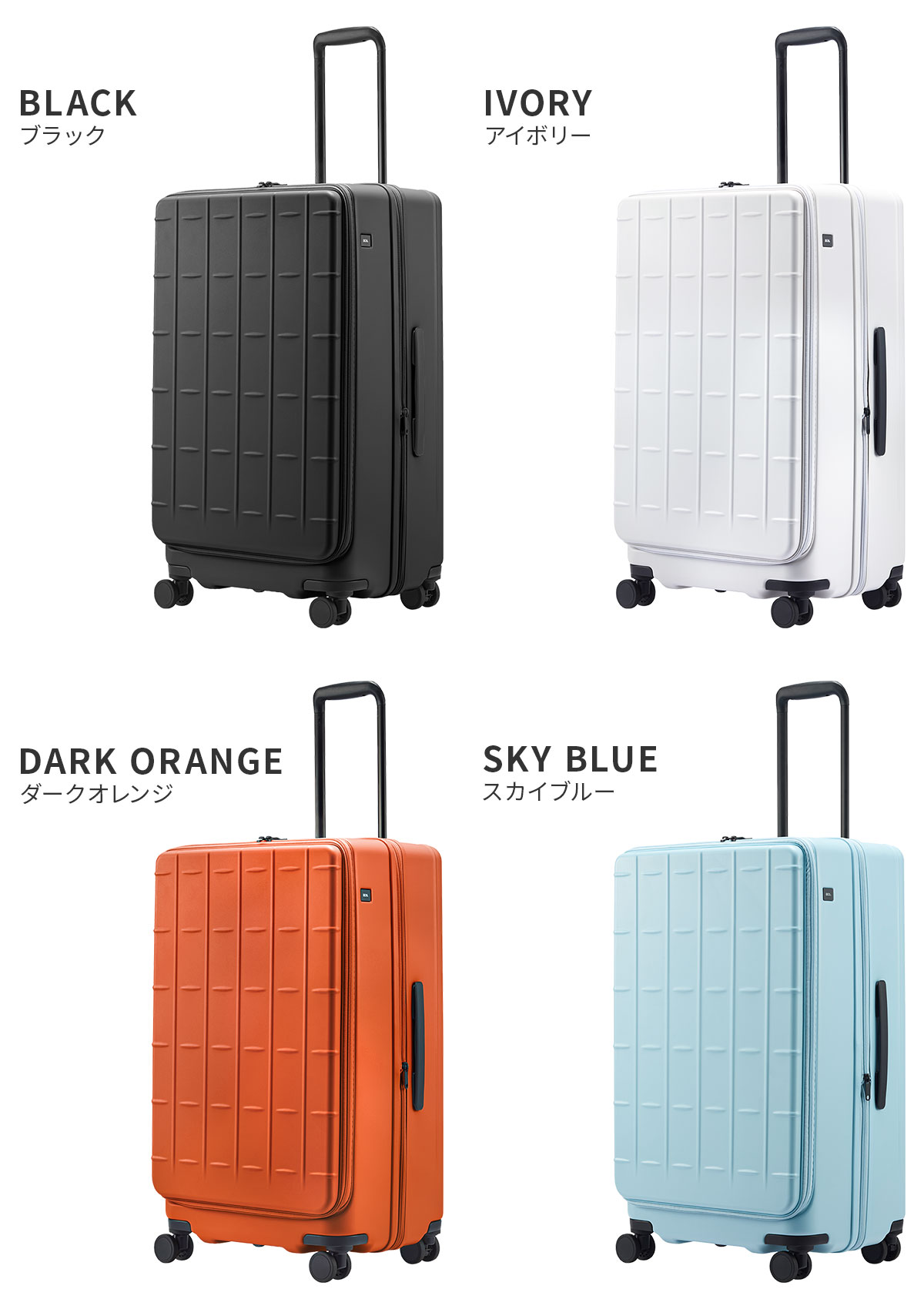 シンプルな格子状のデザインがポイントのフロントオープンタイプの新作スーツケース。