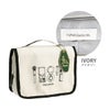 ホテルやバスルームなどでポーチを広げて吊るせるフック付き。内装のループ部分にフックを固定させて収納することができるので、持ち運びの際も邪魔になりません。