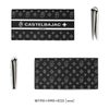 本体素材には、傷が付きにくいサフィアーノ調の型押しに、ロゴをプリントと押しで立体感のあるように表現しました。