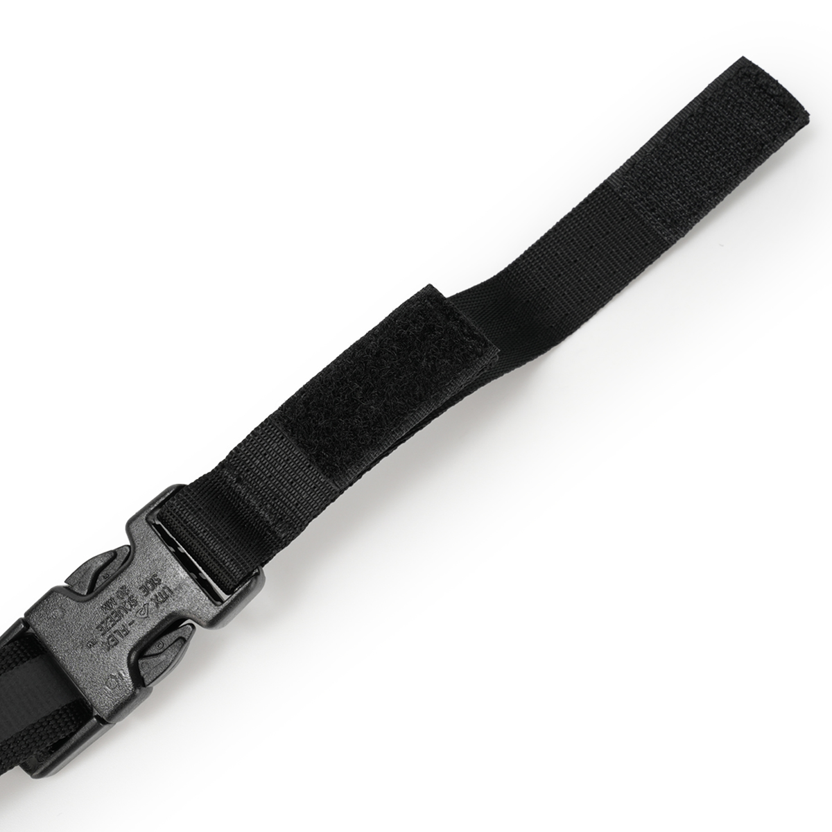 ナイロンベルトと耐久性の高いプラスチックハードウェアを採用した軽量設計。長さは最大約60cmまで調整可能で、体格や装着位置に合わせてフィットさせることができます。