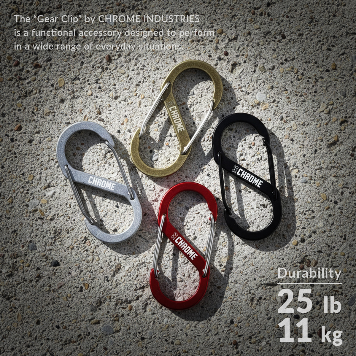 クローム・インダストリーズの「ギア クリップ」は、日常のさまざまなシーンで活躍する機能的なアクセサリーです。ポートランドを拠点とするCHROMEは、アーバンサイクルカルチャーを背景に、都市生活に適した製品を提供し続けています。このギアクリップもその一環として、シンプルながらも実用性を追求したデザインが魅力です。