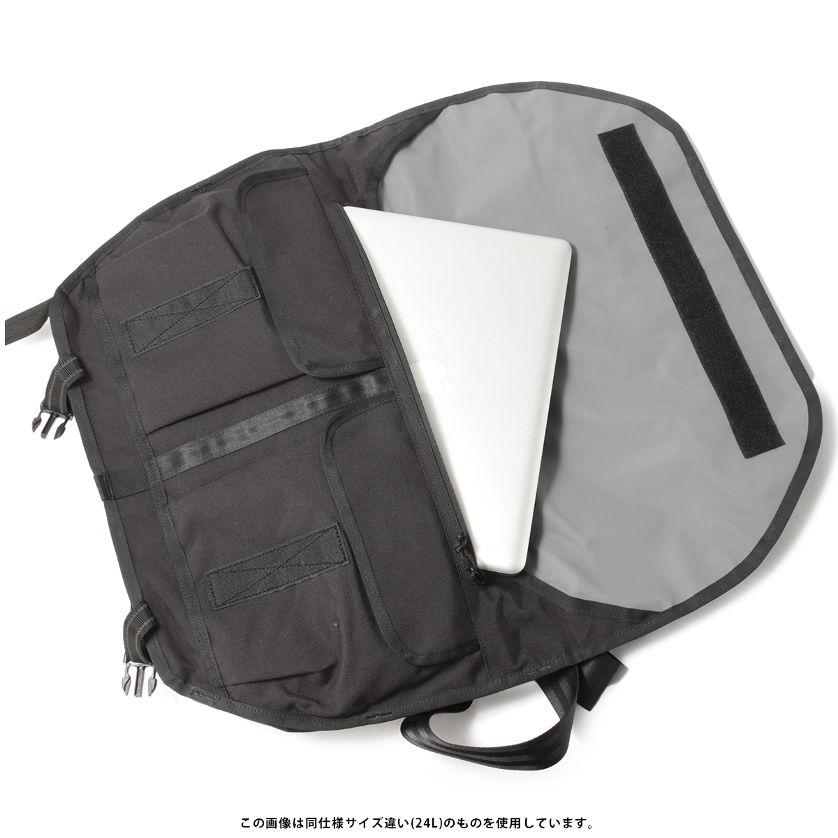 | ヘビーな雨が降る悪天候でも、防水素材に加えて仕切り部分・