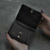 スナップボタン式で開閉しやすく、内装には札入れ1室と7枚分のカードポケットを配置。さらにフリーポケットも備え、必要なものをすっきり整理できます。