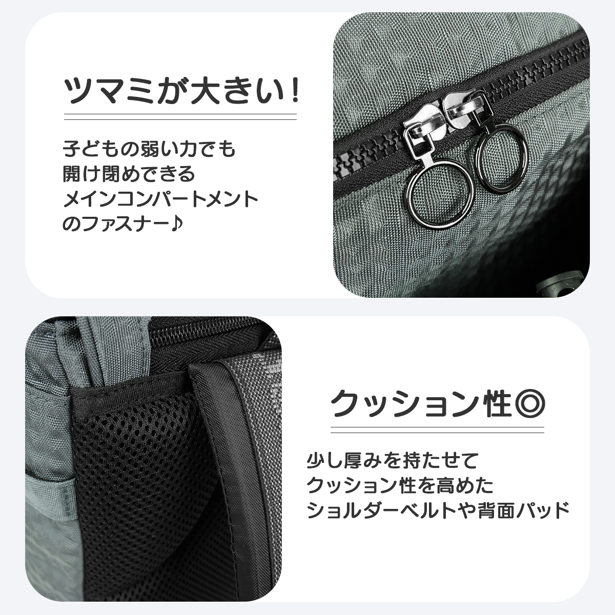 さらに、フラップ内に内蔵されたレインカバーは、突然の雨にも安心。通学途中や帰宅時に急な天候の変化があっても、大切な荷物をしっかりと守ります。