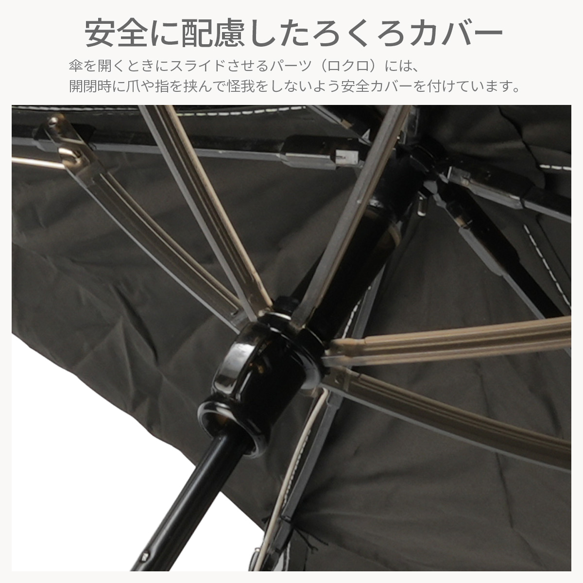 ●傘骨の構造部に手を触れないでください。