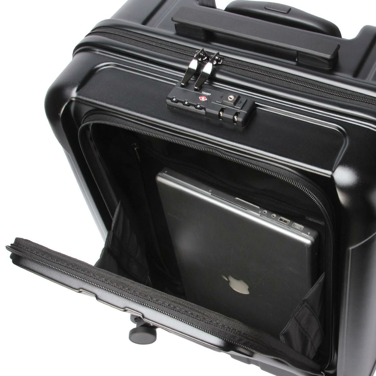 フロントポケット・メインルームファスナーにTSAロックを採用。ダイヤルロック式のため鍵をなくす心配もいりません。