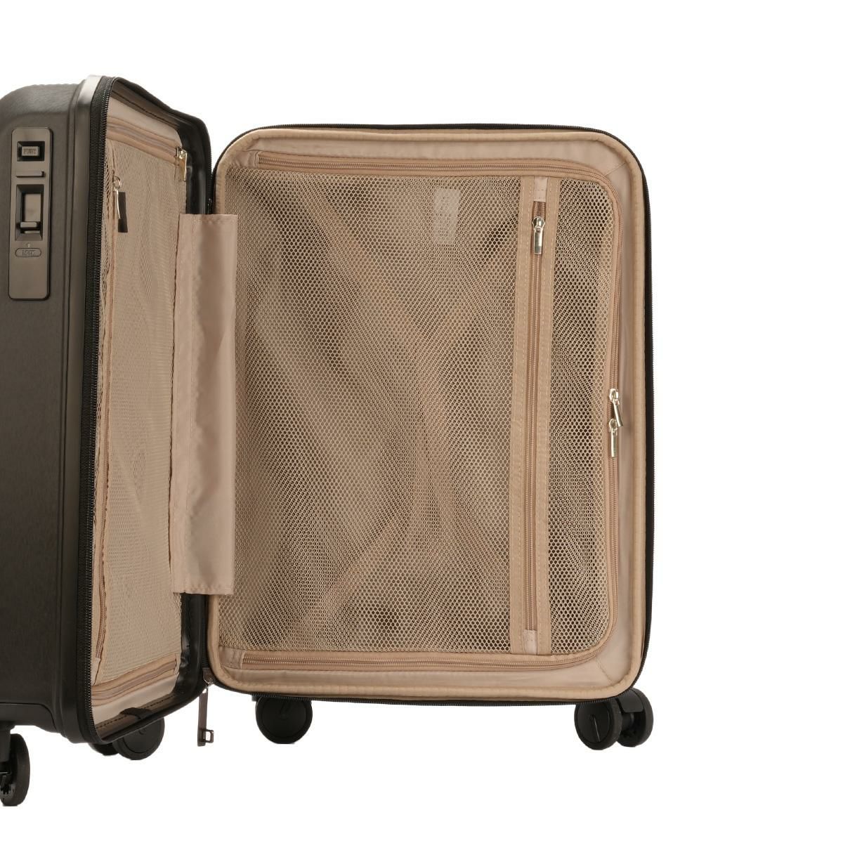 TSAロックを標準装備し、海外旅行でも安心のセキュリティを提供。ダイヤルコンビネーションロックで鍵の紛失を気にせずに使えます。