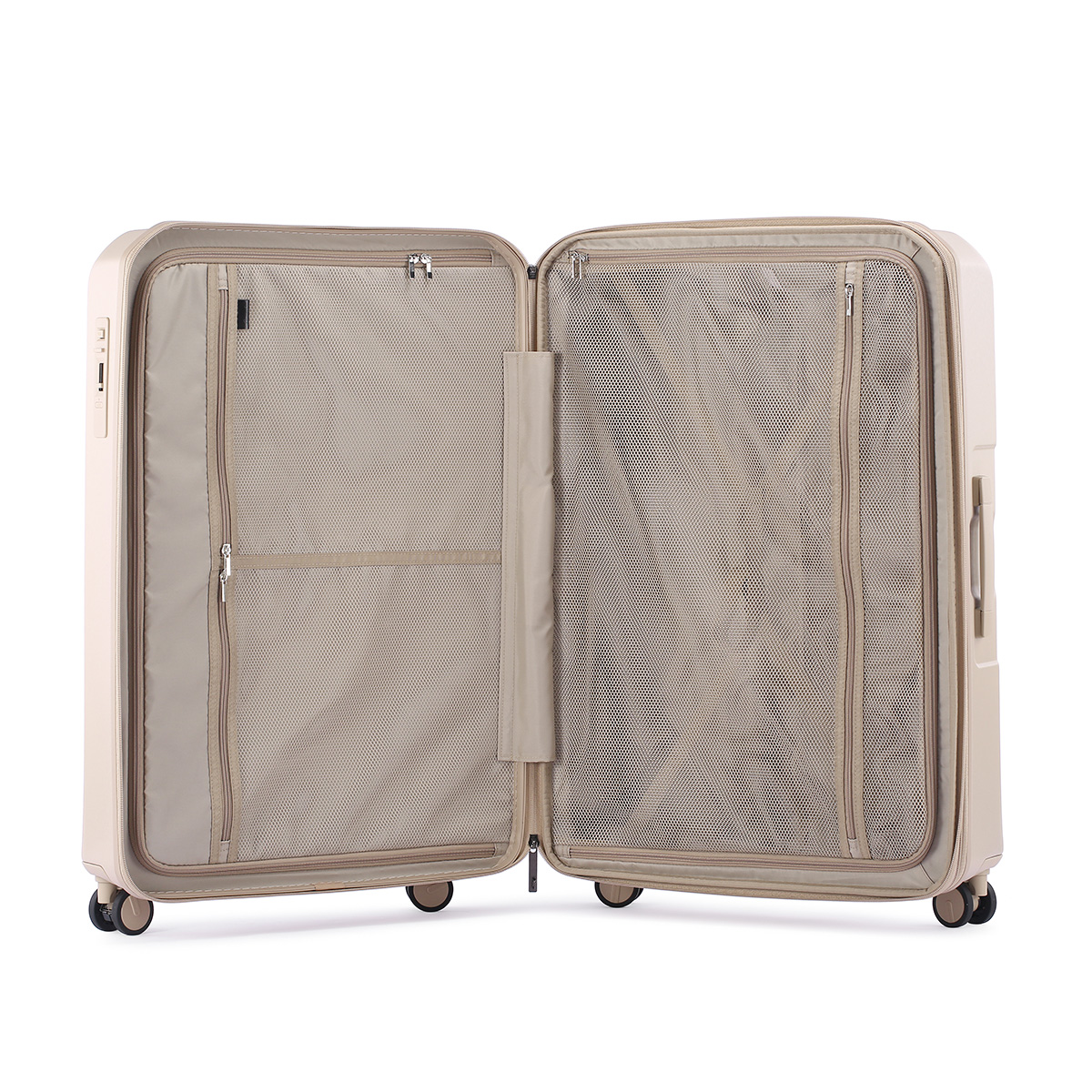 ●このスーツケースのTSAロックはダイヤルコンビネーションロックです。鍵穴はTSA職員が緊急の際に解錠して検査を行うためのものであり、差し込み式のキーは付属しておりません。