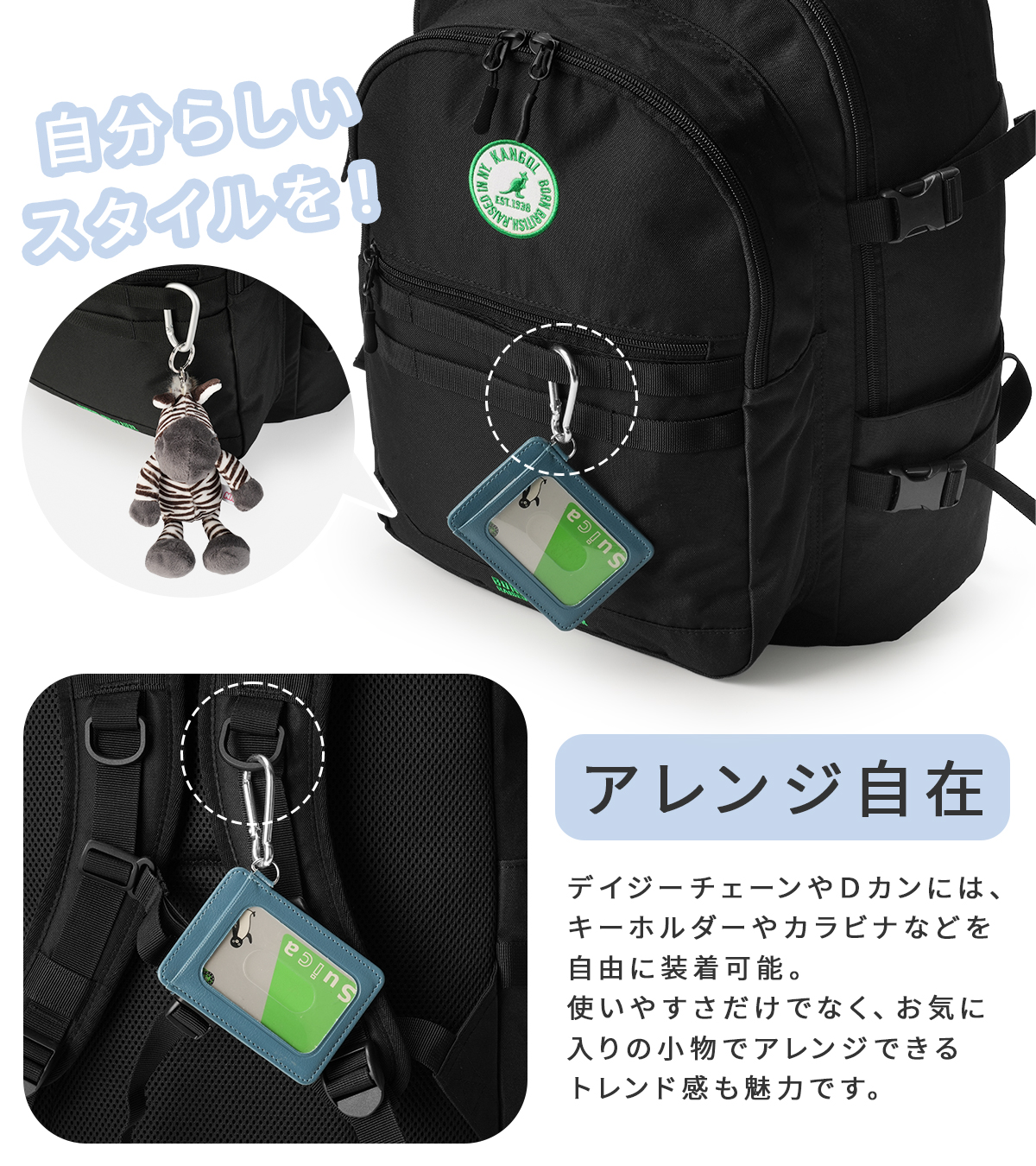カンゴールのバックパックは、機能性とデザイン性を両立させた、毎日をサポートする頼れるアイテムです。