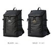 本体は、水滴に強いターポリン素材。フロントのロゴプリントがワンポイントになっています。 容量約 32L で荷物の多い学生さんにも安心のサイズ感。メインルームはダブルファスナー開閉式でコの字型に大きく開き B4ファイルがすっぽり収まります。 PC やタブレットの収納に最適なクッションポケットを装備。 フロント・サイド・インナーと大小さまざまなポケットが付いているので、小物の収納にも困りません。 さらに背面側に、財布や定期の収納に便利な隠しポケットを搭載。 メインルームに直接アクセスできるバックサイドファスナー付きで、リュックを下ろさなくても中の荷物を取り出せるのもポイント! 背面とショルダーベルトは、クッションパッド入りで通気性の良いメッシュ素材を採用。 アクティブな毎日をサポートしてくれる使いやすいバッグは、デイリーユースからアウトドアや旅行などのお出かけにも最適。ベーシックなデザインで性別・年齢を問わず、色々な方にお持ちいただけます。