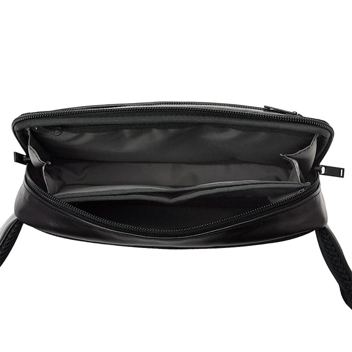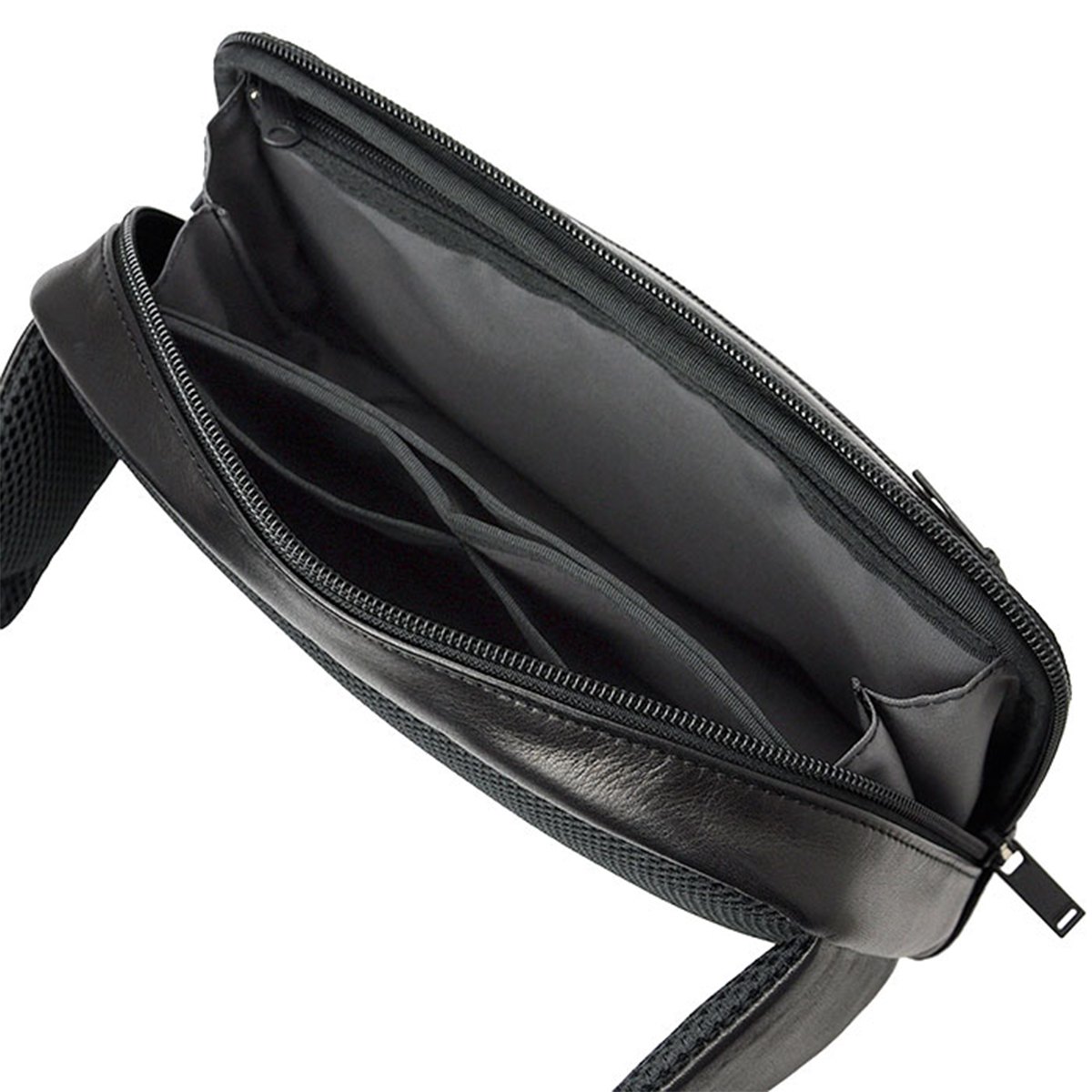 内装には傾斜をつけた小分けポケットを採用し、文庫本や名刺入れなど高さの異なるアイテムを効率よく収納可能。グレーカラーの裏地は視認性を高め、荷物の出し入れをスムーズに行えます。