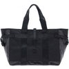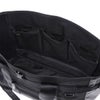 車のエアバッグや防弾チョッキにも使われる耐熱・耐摩擦・引裂強度に優れた66ナイロン糸で織り上げた日本製のバリスターナイロンをメイン素材にしています。一部分に工業用資材として用いられる耐水性の高いターポリン生地を使用しています。黒一色のワントーンでありながら、異なる質感の生地を組み合わせることでコントラストの効いたスタイリッシュなデザインに仕上げています。