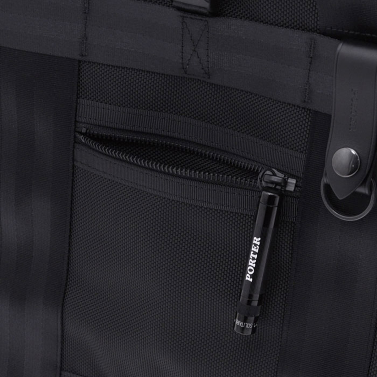 ポーチとウォレット、ペンケース以外の全型にヌメ革の着脱式キーホルダーとPORTERの刻印入りマグライトが付属します。(※マグライトには保証書・キーホルダー・電池・アテンションが付属し、専用ケースにまとめています。)