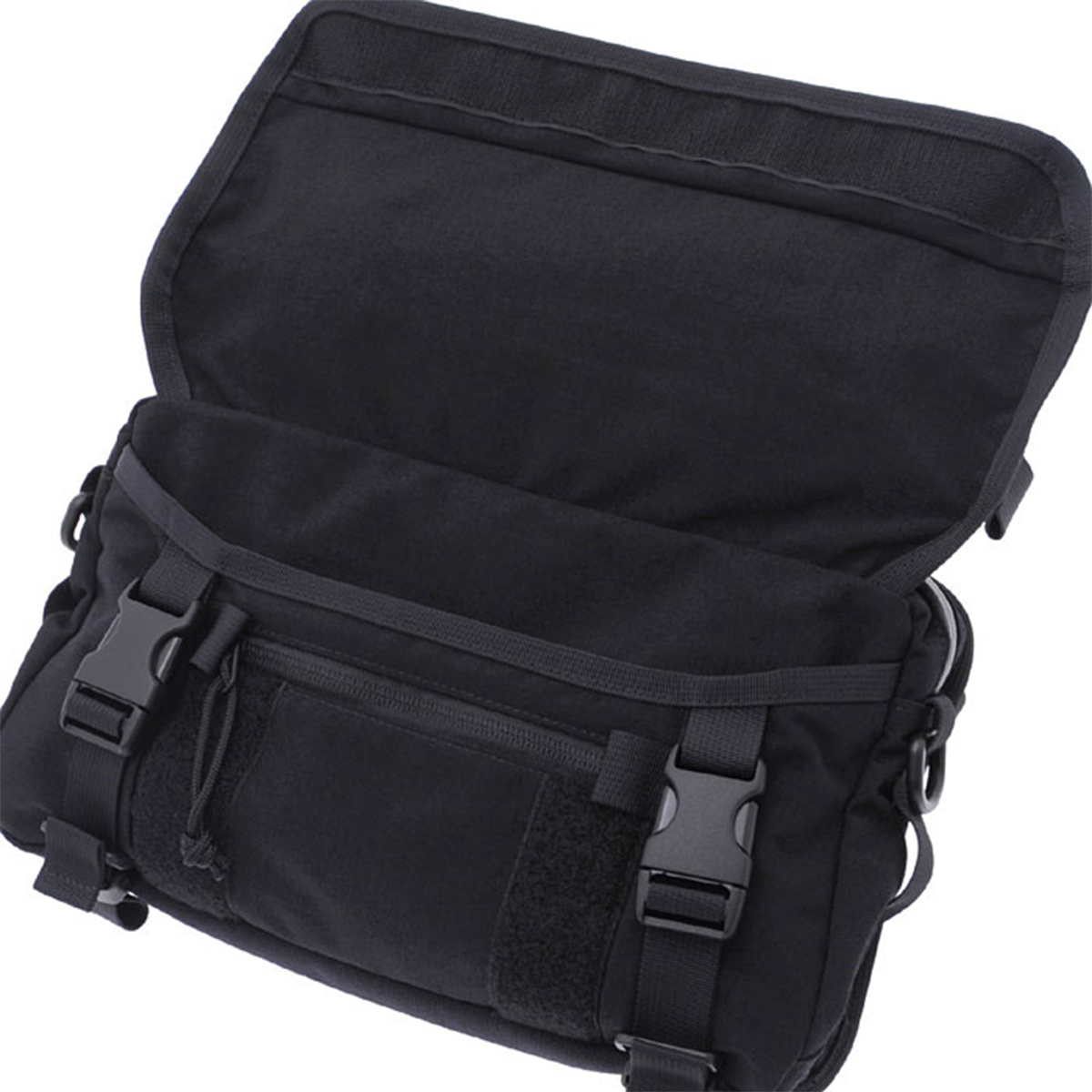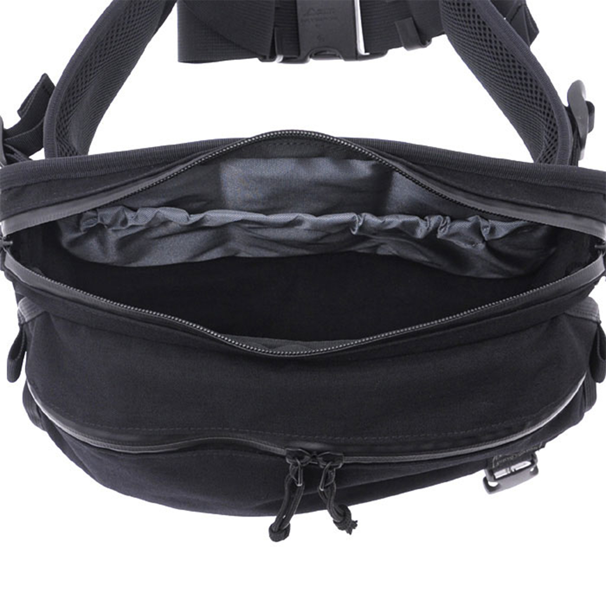 フラップのストラップを調整することで、荷物量に応じてマチ幅を変化させることが可能。荷物が少ない時でも内部で動きにくい設計です。