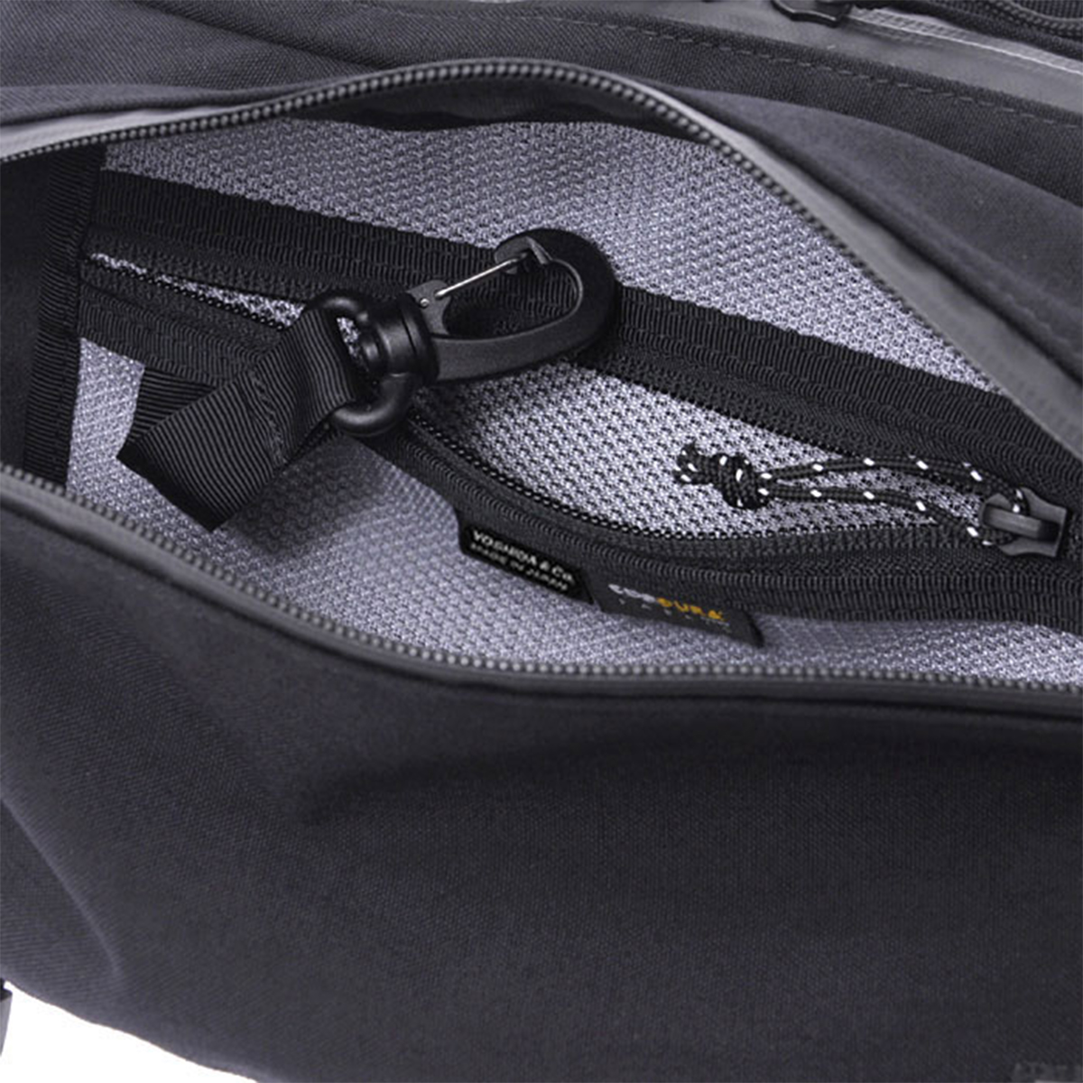本体には摩擦や引裂に強い500デニールのコーデュラナイロンを高密度に織り上げた生地を採用。スパン糸特有の落ち着いた質感により、ナイロン特有の光沢を抑えた上品な仕上がりです。底部には1000デニールコーデュラナイロンを使用し、耐久性を強化しています。