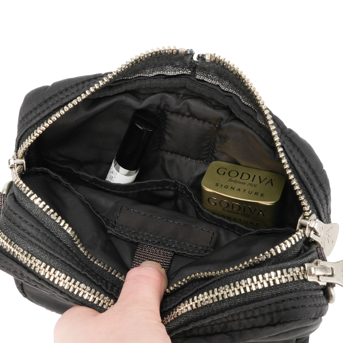 |内側:ポケット× 4 (ポケット×2・ジップ×1・ベルクロ×1)