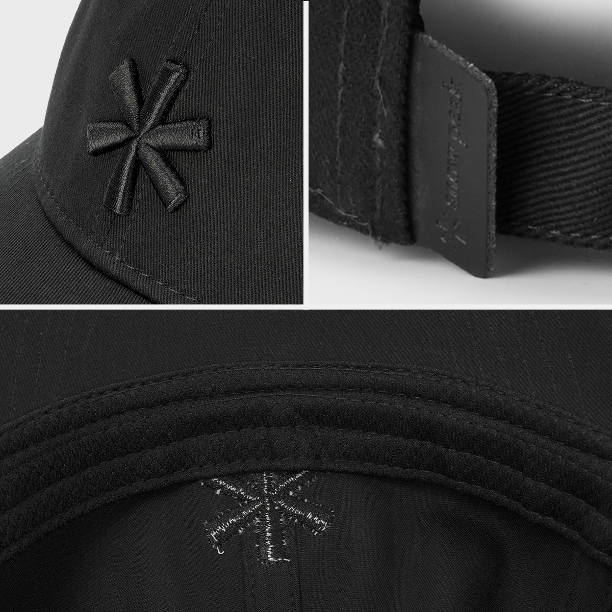 フロントには、snow peakを象徴するアスタリスクモチーフを3D刺繍で配置。シンプルなデザインの中で、さりげないアクセントになっています。