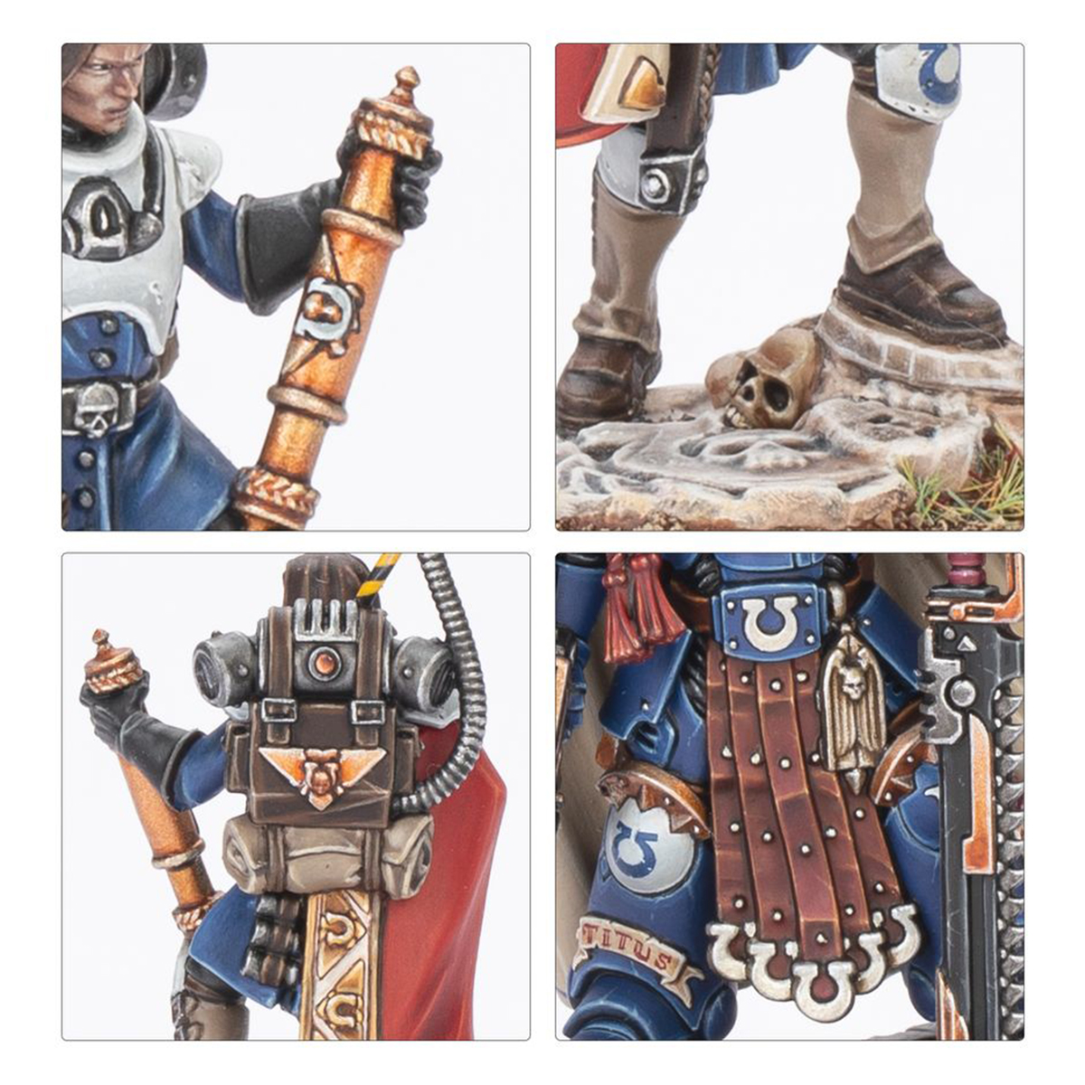 これらの実績ある戦士たちに加えて、五百世界におけるタイタスの計画に不可欠な他のフィギュアもいくつか含まれています。ガイウス・シルヴァはタイタス艦隊の旗艦を指揮し、ダイナル・コルネリウスは主任アストロパスです。エメリア・ミネルヴァスはウルトラマー防衛アウクシリアの尊敬されるレガトゥスであり、ルシア・ヴェスタは比類なき交渉人です。彼らは皆、戦闘に精通しています。ウルトラマリーンに恐れを知らぬリーダーをお探しなら、もう探す必要はありません。このキットには、エキサイティングなペイントプロジェクトに最適な魅力的なキャラクターもいくつか含まれています。
