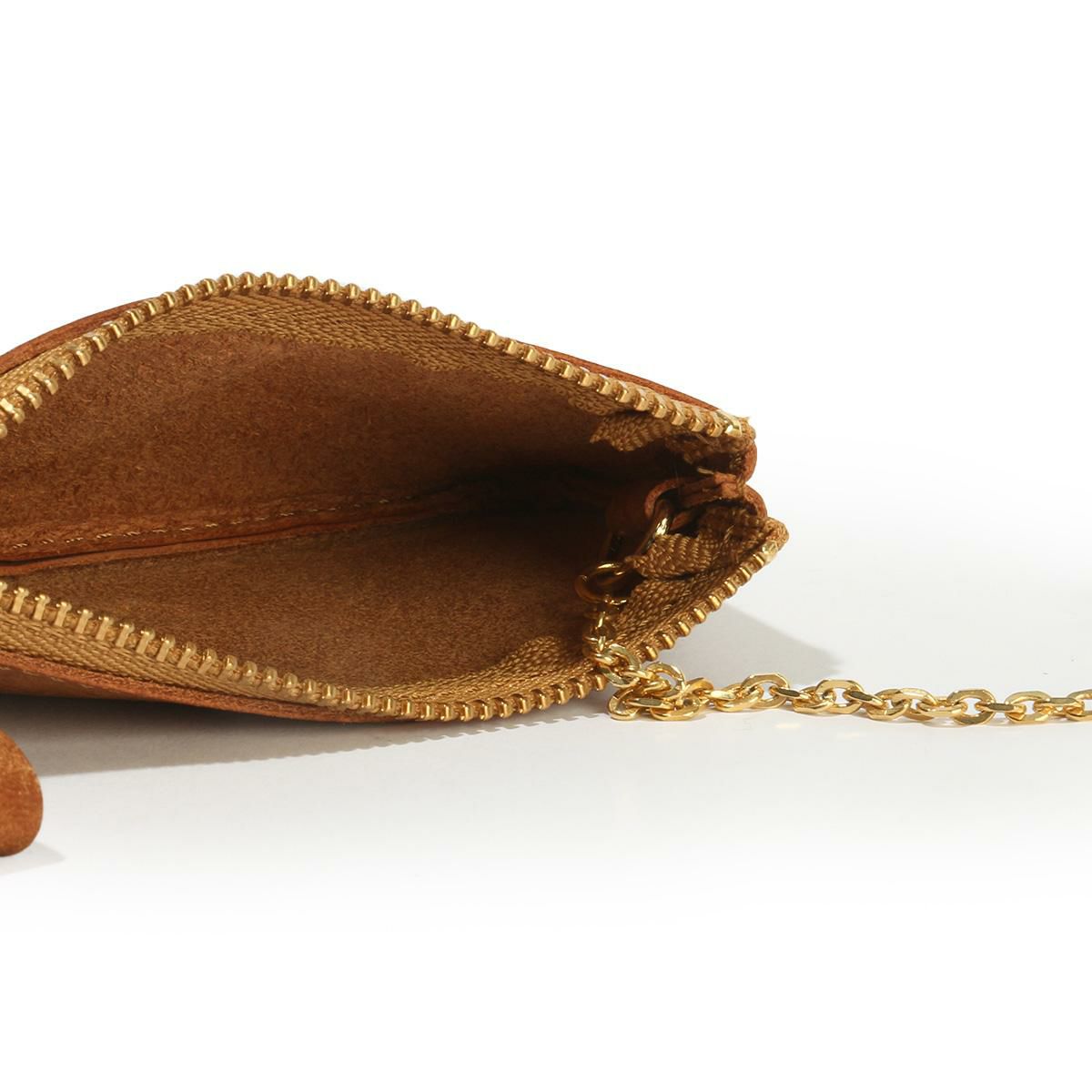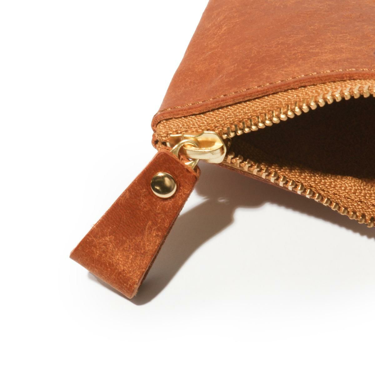 ファスナーには本体と同じプエブロレザーの引き手を採用し、細部にまで統一感と温もりを感じさせます。
