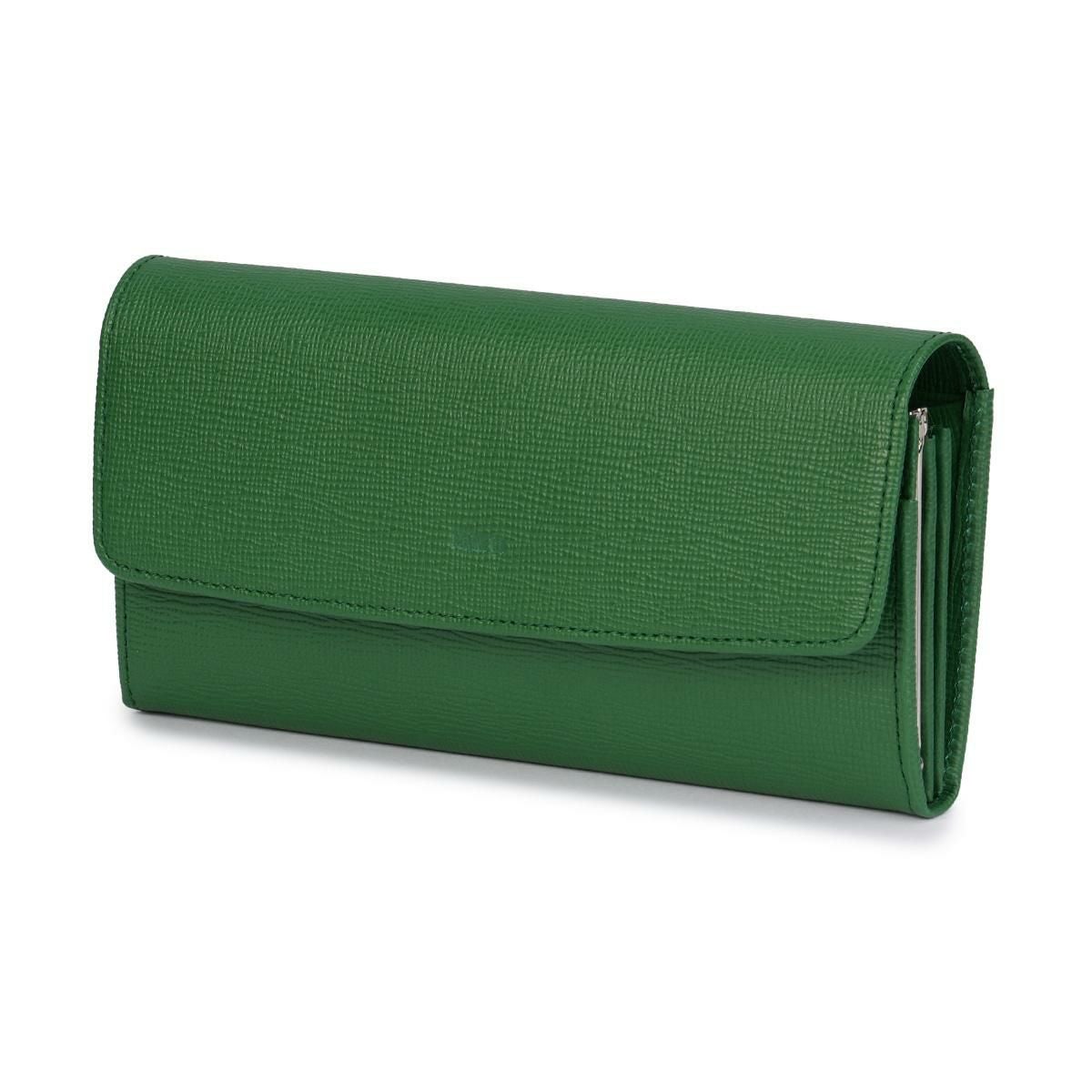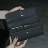 スナップボタン式で開閉しやすく、札入れ2室と10枚分のカードポケットを配置。日常に必要な収納力をしっかり備えています。