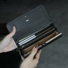 小銭入れはファスナータイプに加え、口金式のがま口を採用。大きく開くがま口は中身が見やすく、小銭の出し入れもスムーズ。用途やシーンに応じて使い分けられる実用的な構造です。さらにフリーポケットも複数備え、レシートやチケット類の整理に便利です。