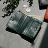 スナップボタン式で開閉しやすく、内装には札入れ1室と7枚分のカードポケットを配置。さらにフリーポケットも備え、必要なものをすっきり整理できます。