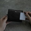 背面にはL字ファスナー式の小銭入れを搭載し、外側から素早くアクセス可能。内側にカードポケットもあり、使用頻度の高いICカードなどの収納に便利です。