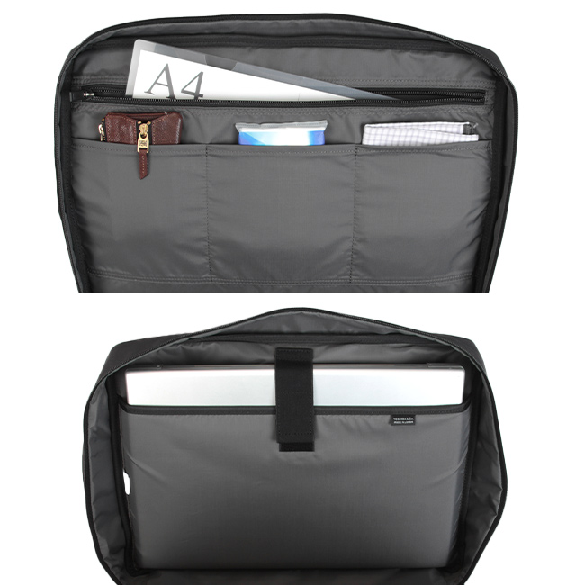 スーツスタイルはもちろん、カジュアルビジネススタイルにも取り入れやすい3WAYビジネスバッグです。 日常的に持ち運ぶアイテムを小分け収納出来るスペースが充実。 ノートPCやタブレット端末が収納可能なクッション性のあるポケットも備わっています。