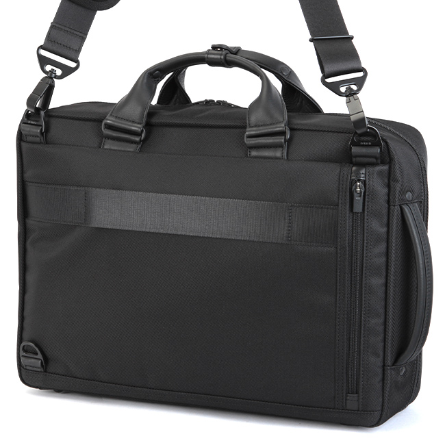 ブリーフケース、ショルダーバッグ、リュックの三形状に変更することができます。