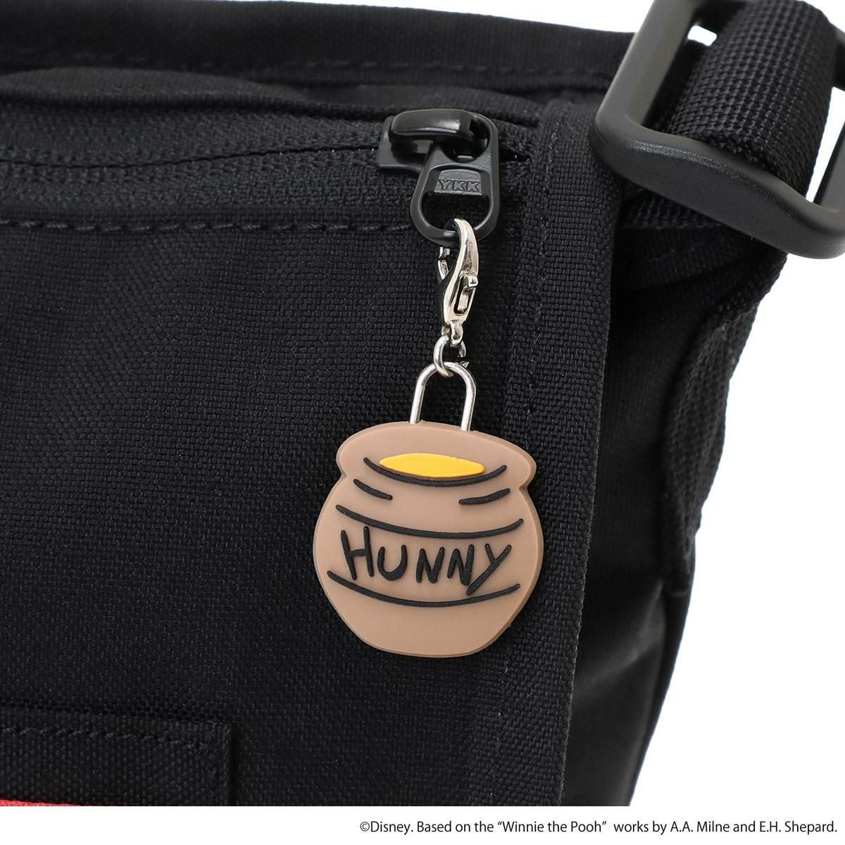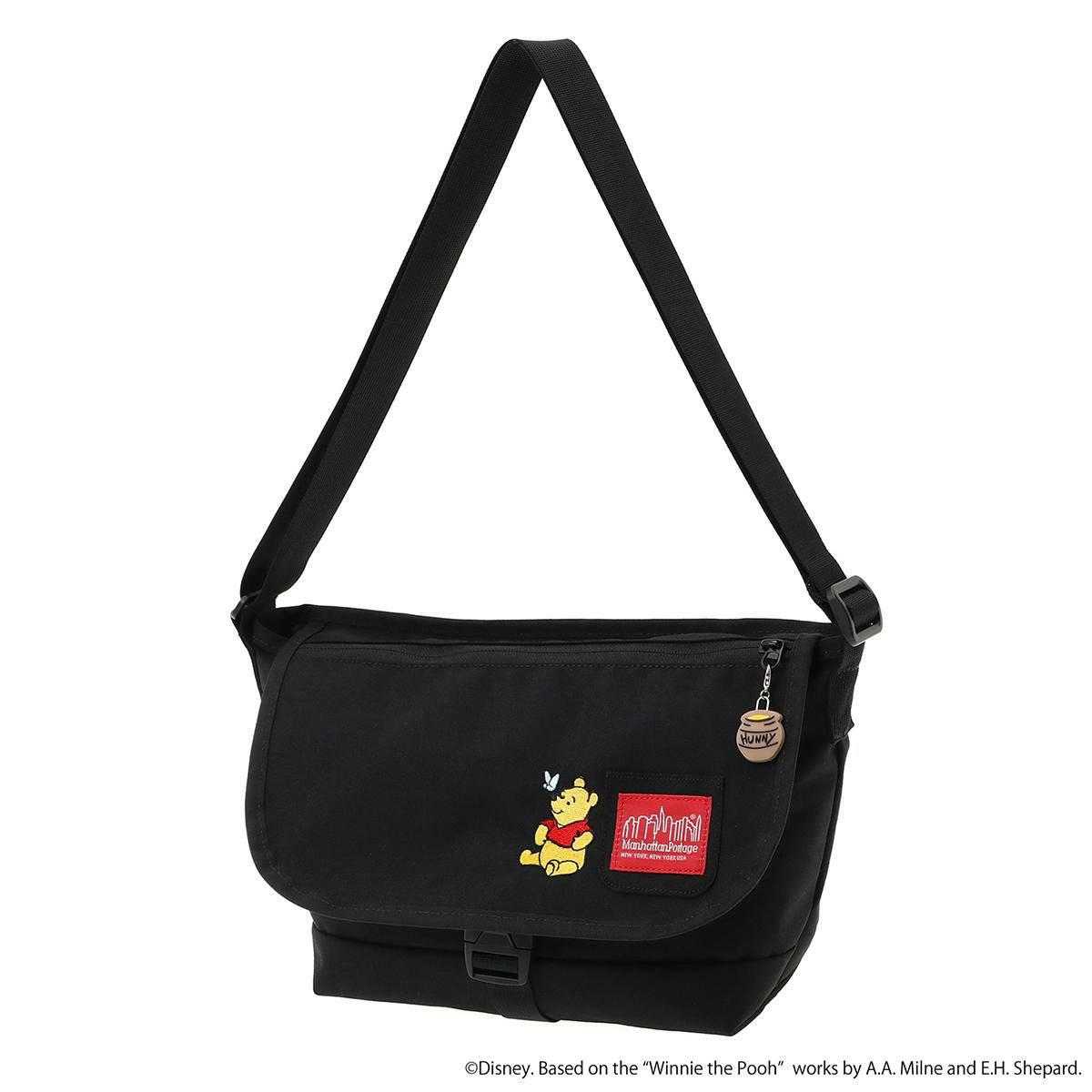 Manhattan Portageが誇る軽量かつ丈夫で使い勝手が良いアイテムに、ほのぼのとした「プーさん」のイラストがデザインされ、ジッパープーラーにはハニーポットのチャームをプラスし、細部までこだわりを感じられる特別仕様です。