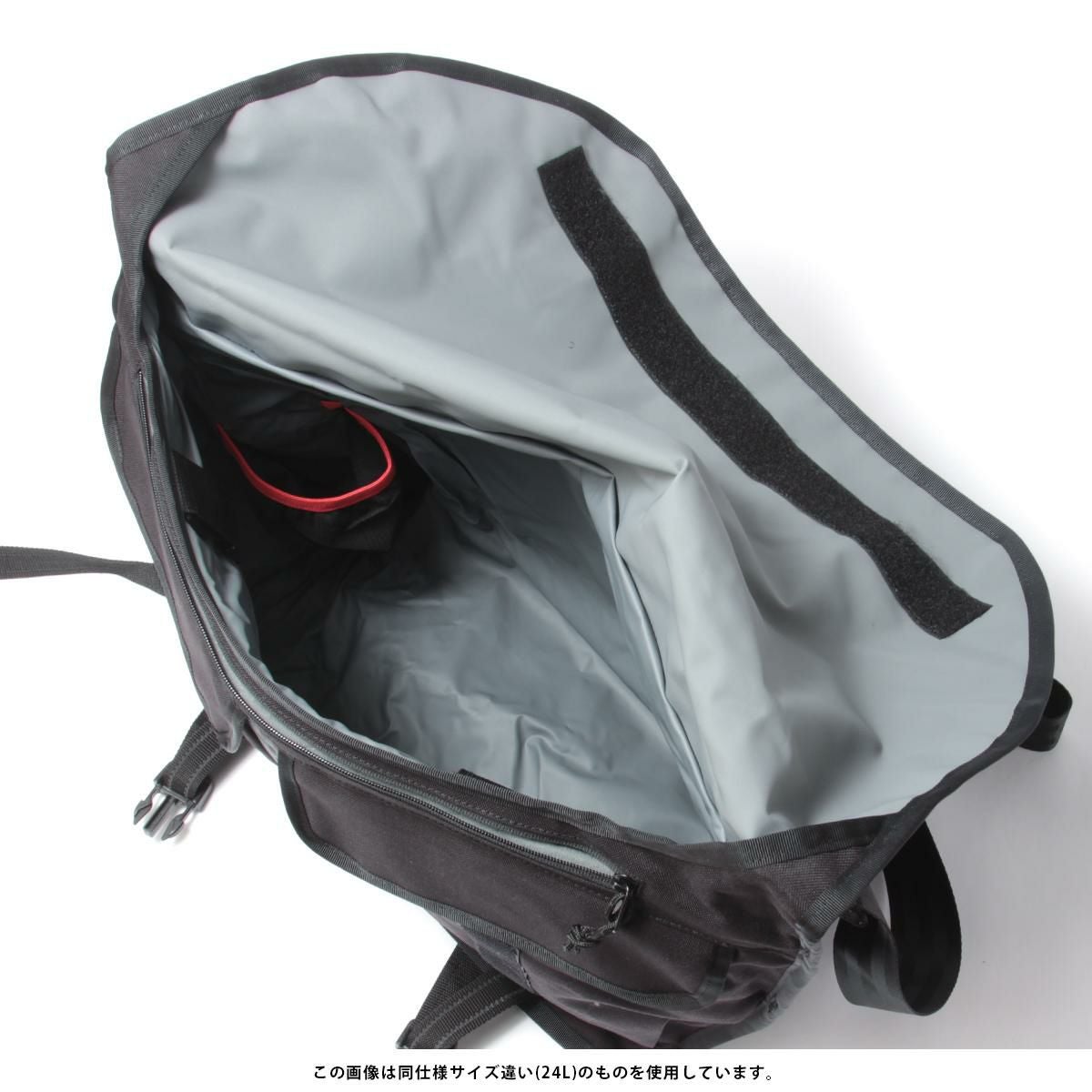 | ヘビーな雨が降る悪天候でも、防水素材に加えて仕切り部分・