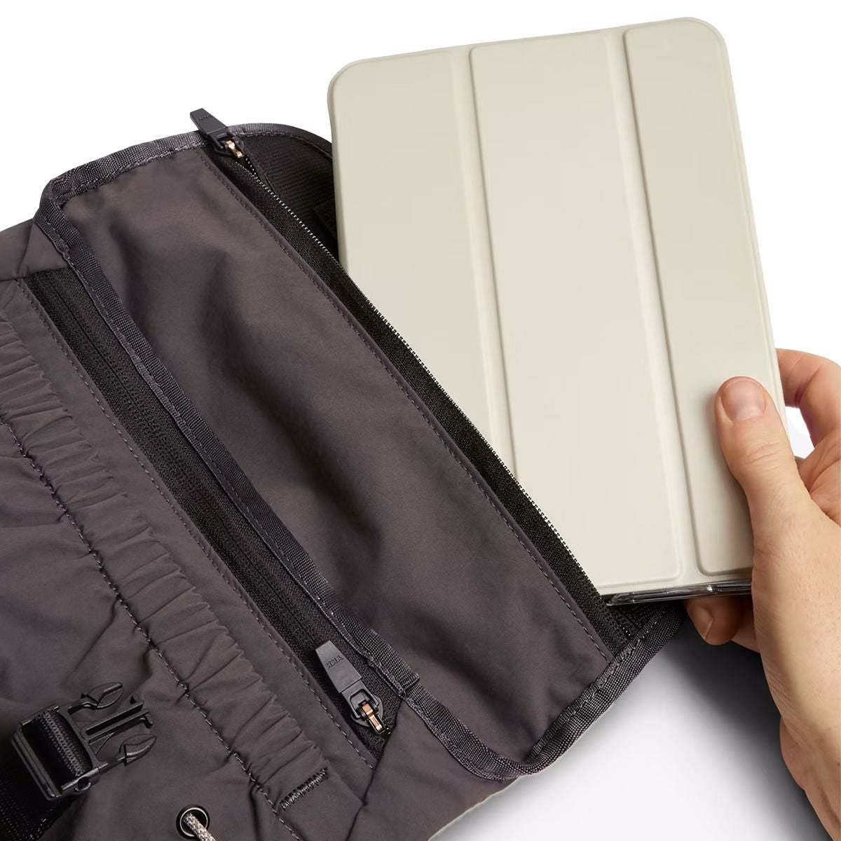 |内側に厚みの少ないアイテムを収納できるファスナー付きポケット