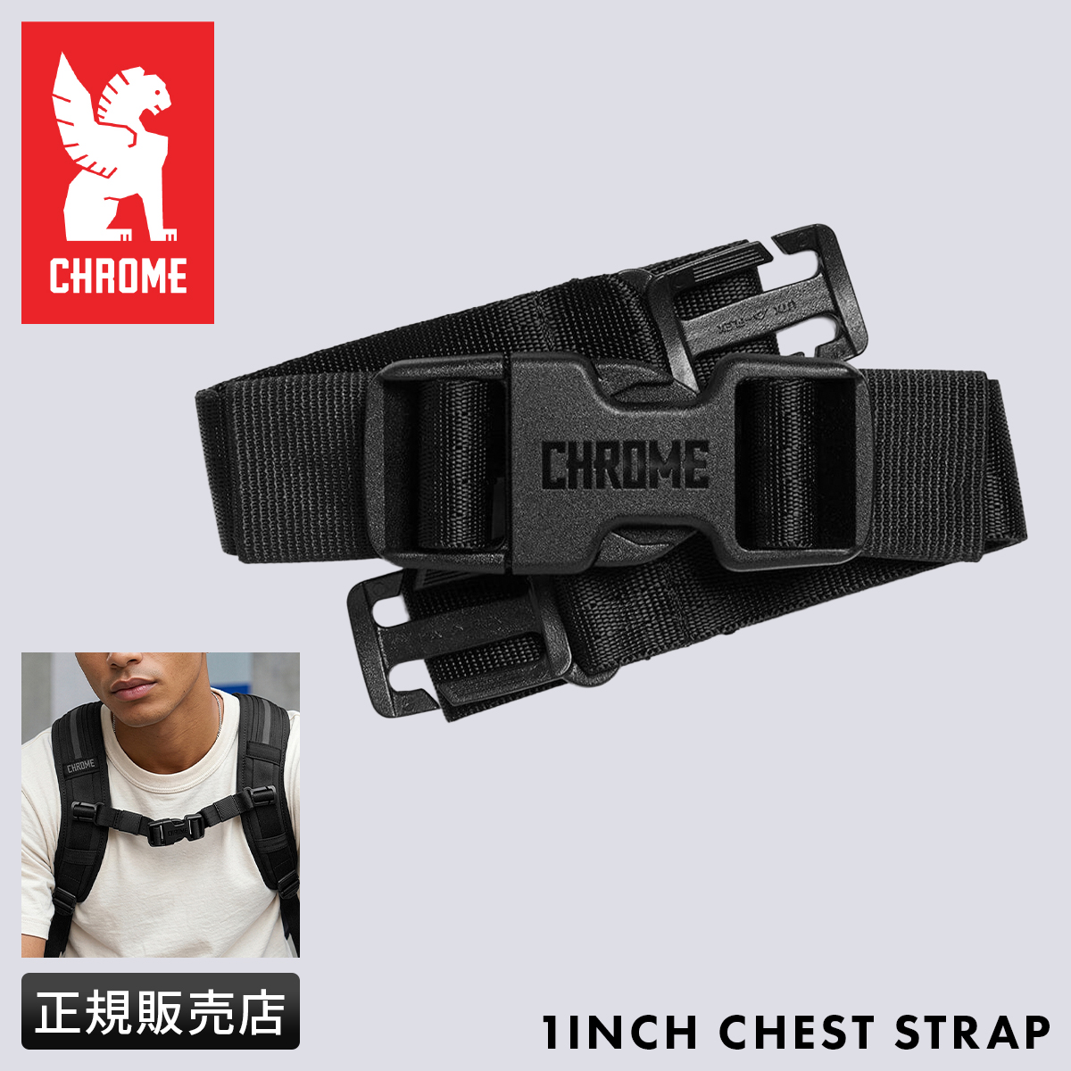 CHROMEのバックパックに装着できるアクセサリー「1" CHEST STRAP」。