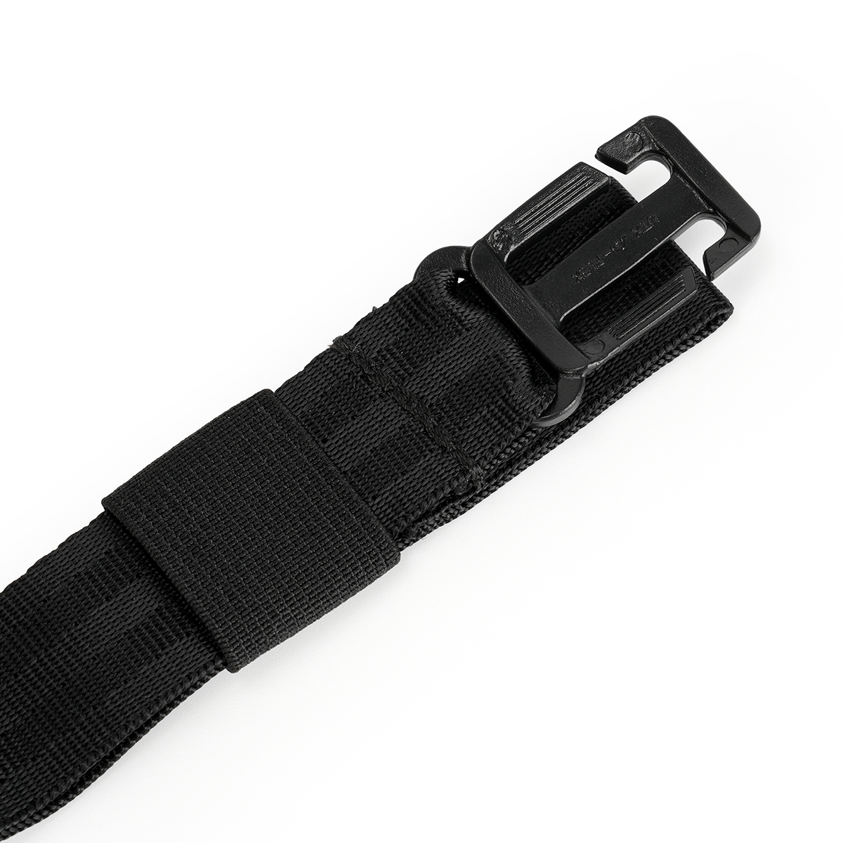 ナイロン製のウェビングと耐久性の高いプラスチック製ハードウェアを採用し、軽量ながらしっかりとした固定力を実現。長さは最大約40cmまで調整可能で、体格や着用スタイルに合わせてフィットさせることができます。