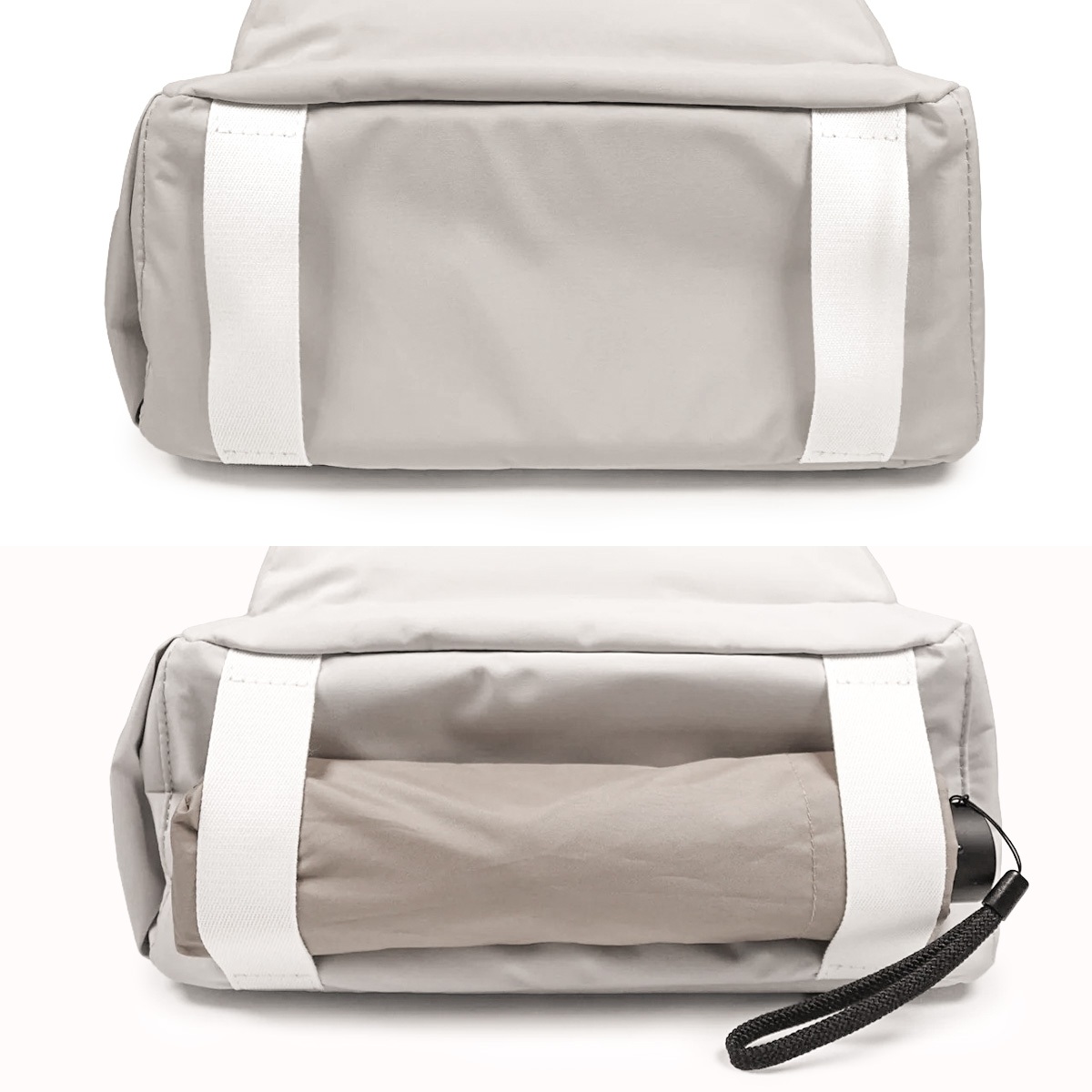 ●本体生地に関しましては、生地自体は防水ですが、撥水ではございませんので水分等を含むとシミになる恐れがございます。また、縫製部分、ファスナーから水が浸入する事がございます。