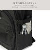 内外に豊富なポケットが配置されており、荷物の整理がしやすいデザインです。内側にはPCポケットがあり、ノートPCやタブレットを安全に収納可能。外側にはファスナーポケットやメッシュポケット、サイドポケットがあり、小物の収納にも便利です。