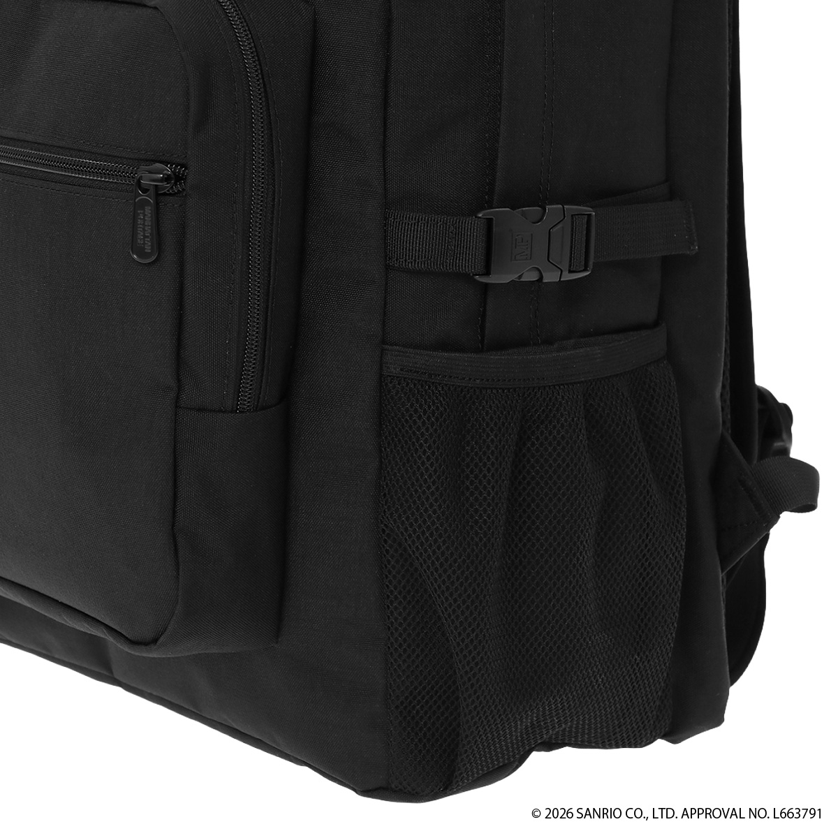 ・片面のメッシュポケット上部には長さのあるものを収納した際に固定できるバックル付き