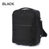 メインスペースはPC・衣類など 1~2泊分の荷物が収納可能なキャリーケースで、外側フロント面には機能性の高いポケット、下部には折り畳み傘用のポケット、サイドにはペットボトルやiPad miniが入るサイズ感のポケットを配置しています。