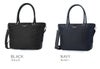ビジネス用のトートバッグは前胴に深めのポケットがあり、A4サイズのクリアファイル程度は収納できる大きさ。スマートな見た目でスーツスタイルからジャケパンスタイルまで汎用性の高いデザインです。またキャリースルー付きなので出張や旅行にも重宝します。