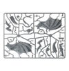 キットには、2本のサイシングタロン、ヘビーベノムキャノン、ストラングルソーンキャノン、ボーンソード、ラッシュウィップなど、豊富な武器オプションに加え、副腎や毒素嚢などのバイオモルフ、そしてウィングドハイヴタイラントをカスタマイズするためのその他のコンポーネントが含まれています。また、翼のないハイヴタイラント、あるいは狡猾なスウォームロードとして組み立てることも可能です。