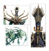 このマルチパーツプラスチックキットには、ナガッシュの至宝とも言える数々のアーティファクトが付属しています。額には魔術の王冠が戴き、手には力の杖アラカナッシュか、モーティスの刃ゼフェト=ネブタールを握っています。黒き鎧モリカーネを纏い、その魔術の体には9冊の古の書が巡り巡っており、それぞれの書には死者を蘇らせる恐るべき秘密が記されています。