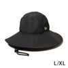 ワイドブリム仕様なので、日光の遮蔽効果に優れています。あご紐は着脱可能。サイズはM/L(約59cm)L/XL(約61cm)の3サイズ展開です。