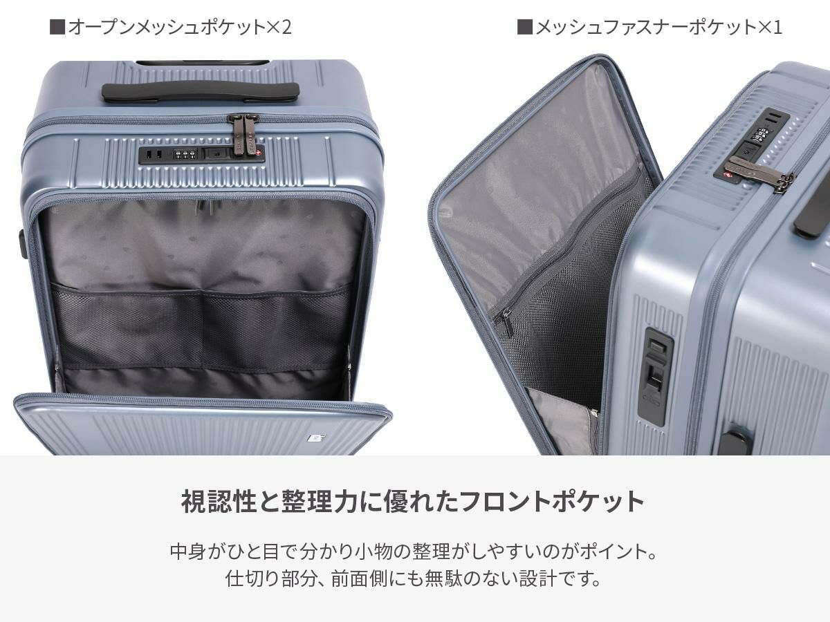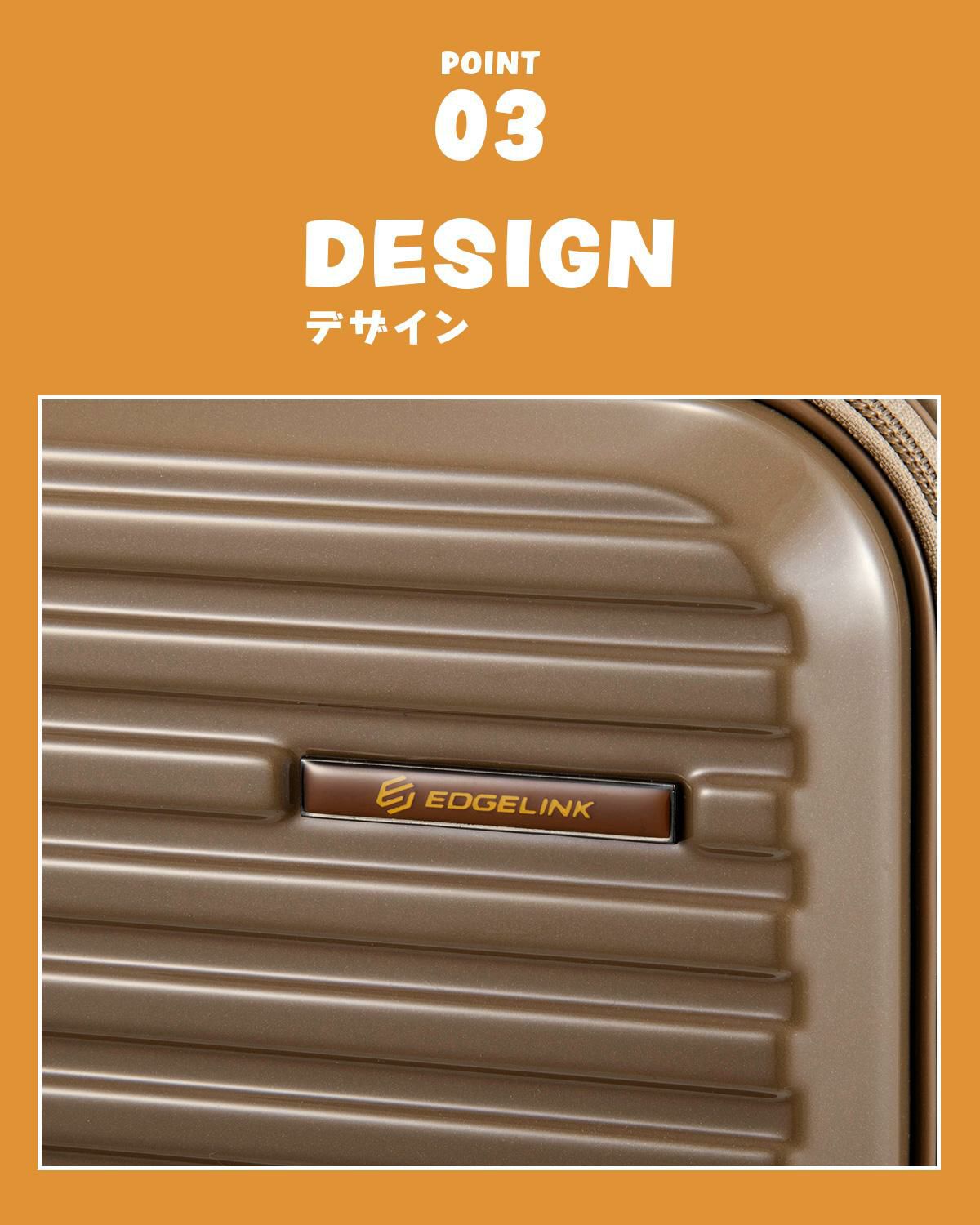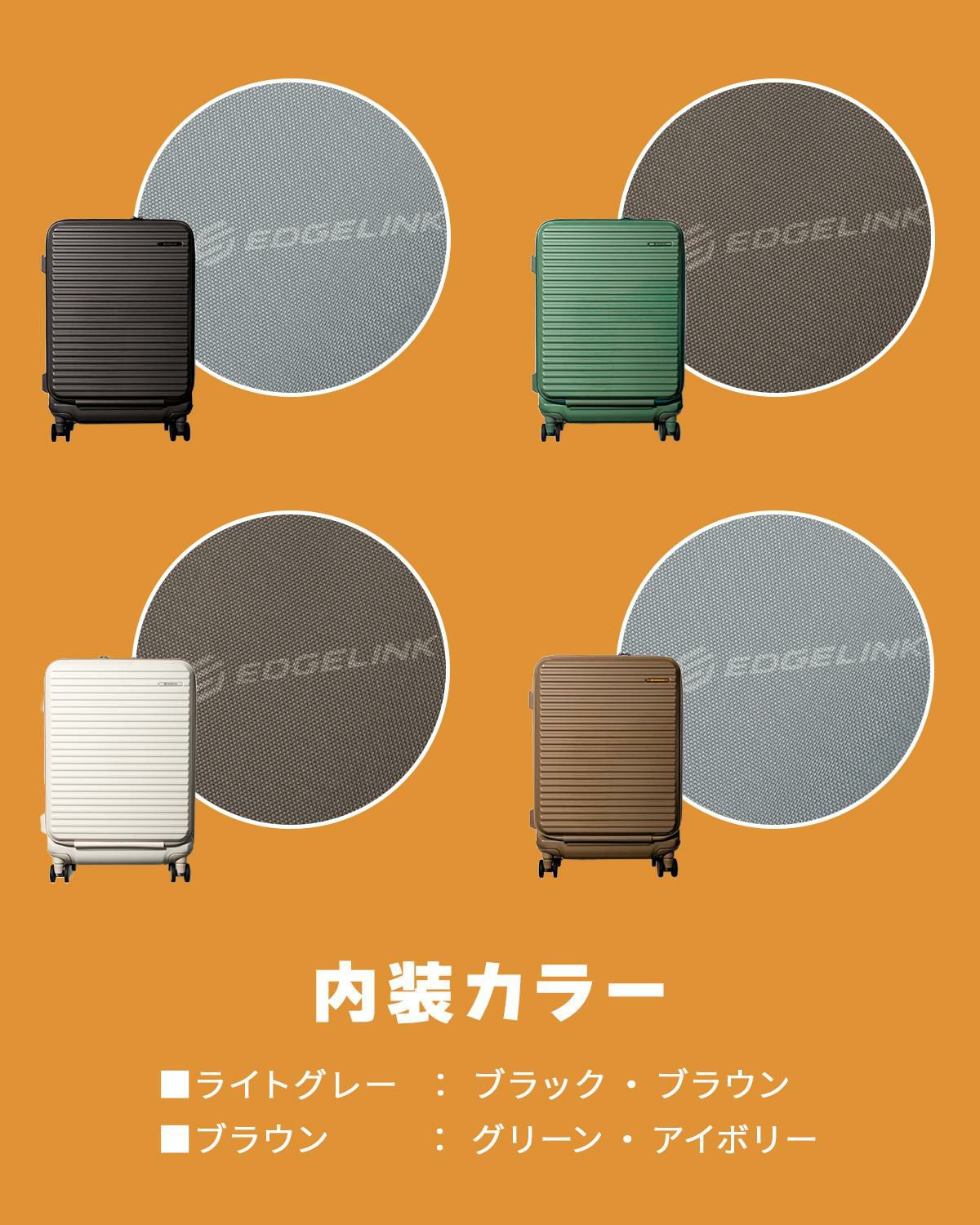 他の画像を見る エッジリンク エッジリンク スーツケース Mサイズ 52L 軽量 中型 フロントオープン キャスターストッパー 4輪 双輪 キャリーケース キャリーバッグ EDGELINK CRUZBOX GLINT 09142 価格 ¥ 25,080 税込 詳細を見る お気に入りに登録する