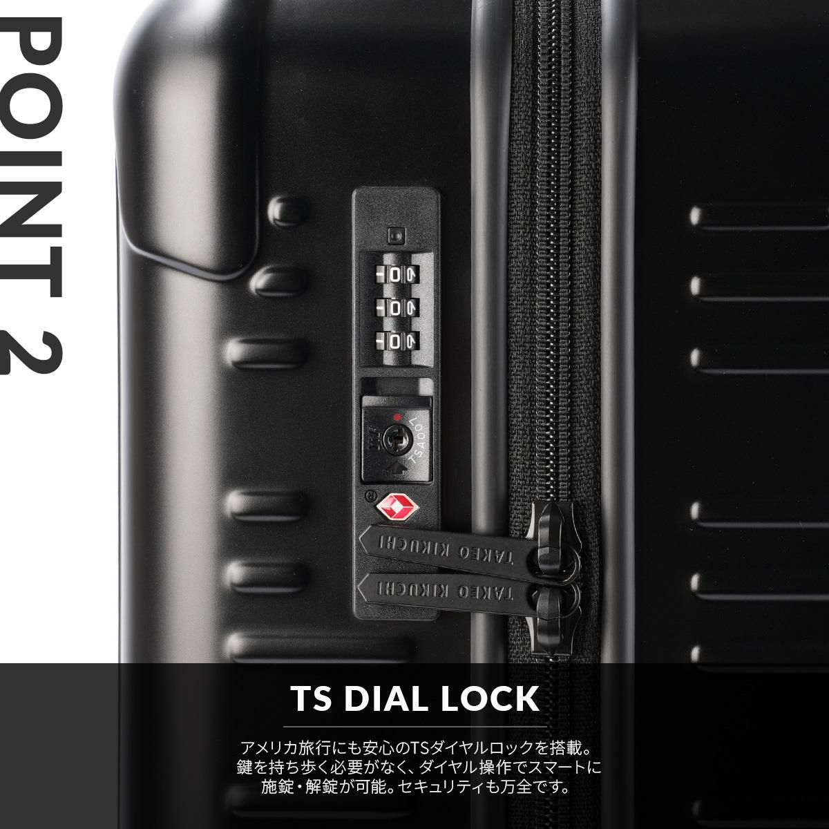 ●このスーツケースのTSAロックはダイヤルコンビネーションロックです。鍵穴はTSA職員が緊急の際に解錠して検査を行うためのものであり、差し込み式のキーは付属しておりません。
