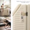 ※このスーツケースのTSAロックはダイヤルコンビネーションロックです。鍵穴はTS職員が緊急の際に解錠して検査を行うためのものであり、差し込み式のキーは付属しておりません。