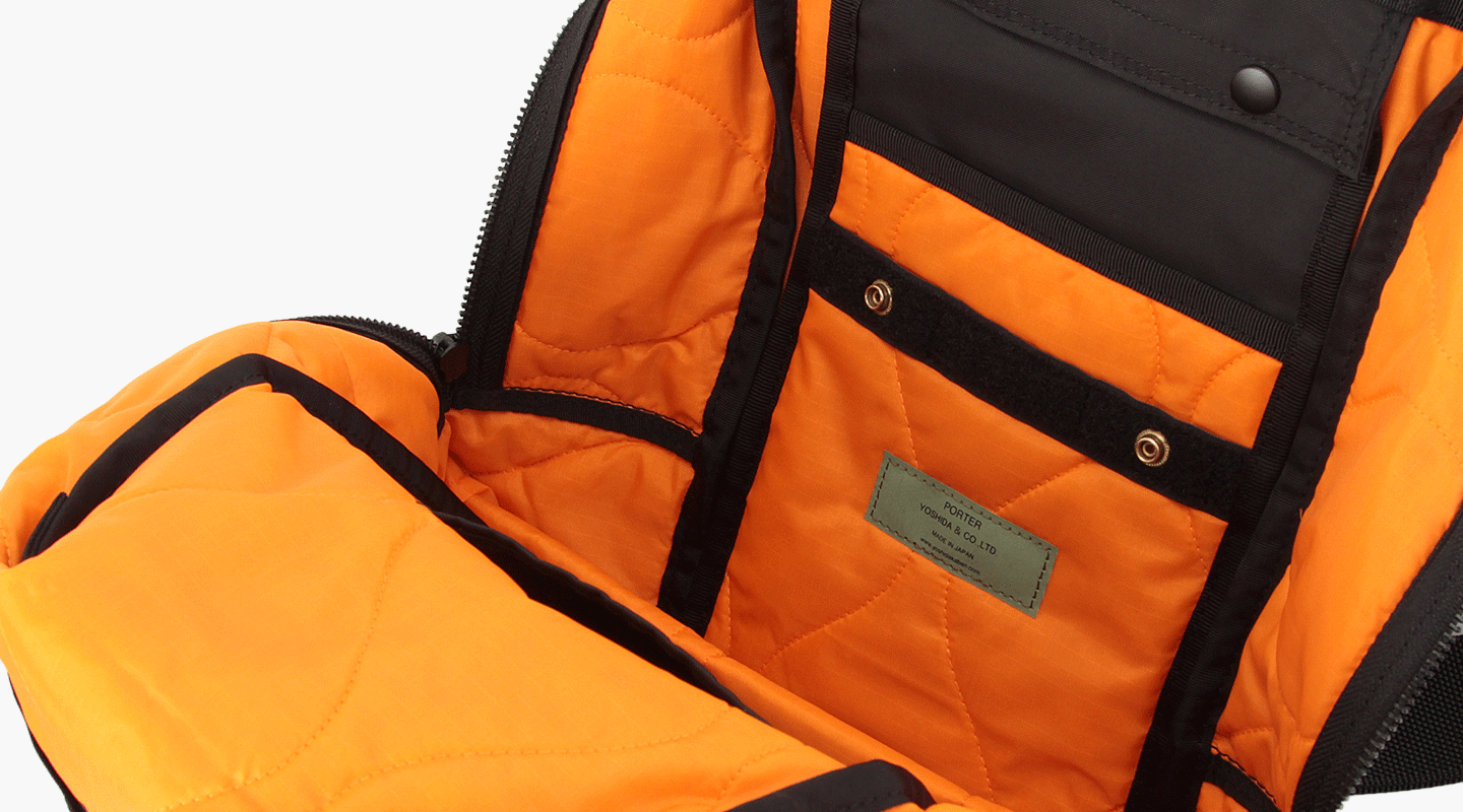 バッグを開けた瞬間に目に飛び込んでくるオレンジは、視認性を高めるだけでなく、持つ人の気分を高揚させてくれます。